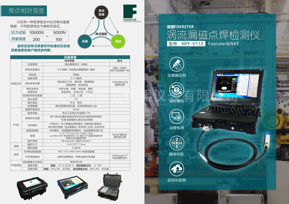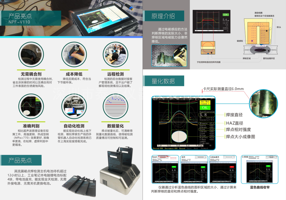 德國(guó)Foerster渦流焊點(diǎn)檢測(cè)設(shè)備NPF-V110,軍工一體化設(shè)備、無需耦合介質(zhì),通過電磁感應(yīng)的方法判斷焊核的實(shí)際大小,非焊核區(qū)域電磁阻力會(huì)驟然降低。