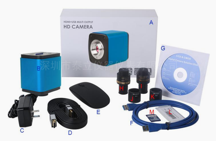 EMS標(biāo)準(zhǔn):EN61000-4-2,3,4,5,6,8,11,EN61204-3, A級輕工業(yè)標(biāo)準(zhǔn)D HDMI線 E USB鼠標(biāo) F 高速USB2.0 A公A公鍍金頭數(shù)據(jù)線/2.0m G CD (驅(qū)動與應(yīng)用程序, Ø12cm) 可選附件 F 可調(diào)焦式目鏡筒適配器 C接口轉(zhuǎn) Dia.23.2mm目鏡筒