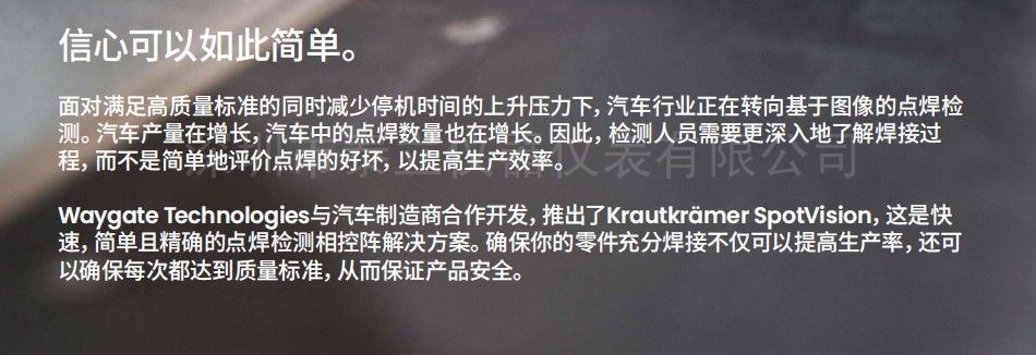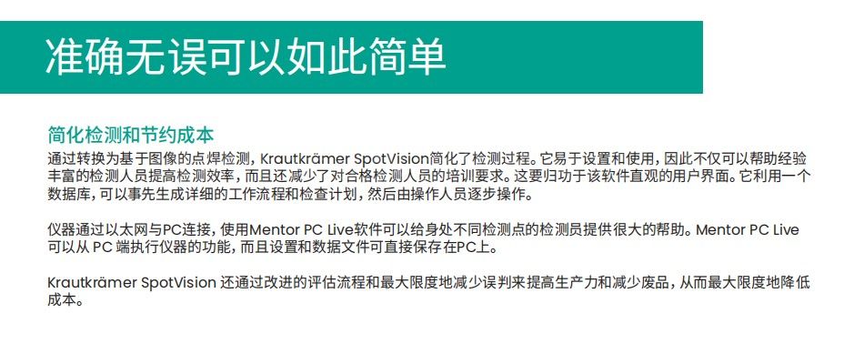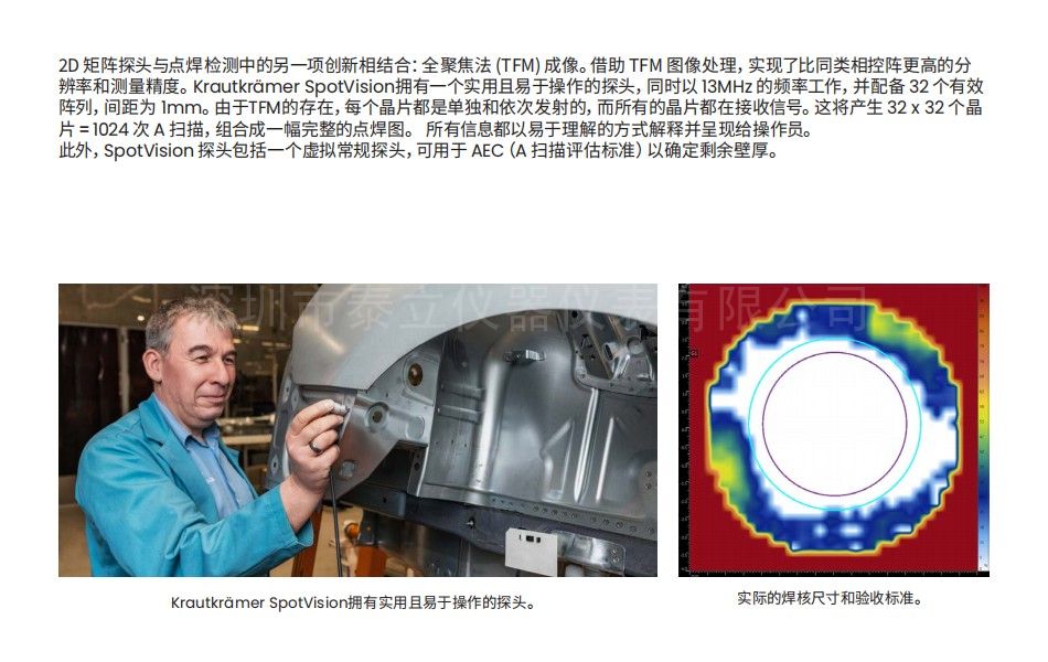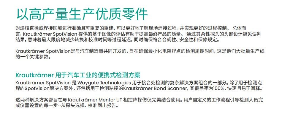 Krautkrämer SpotVision是與汽車制造商共同開發(fā)的,旨在確保*小化電阻焊點的檢測周期時間,這是他們大批量生產(chǎn)線的一個關(guān)鍵參數(shù)。