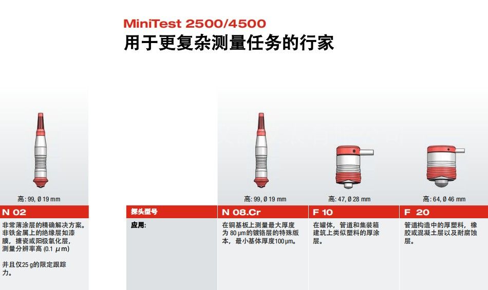 主機可以搭配多種探頭,適用于涂層測量領(lǐng)域的各種測量任務(wù)。