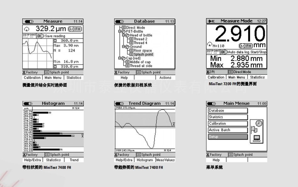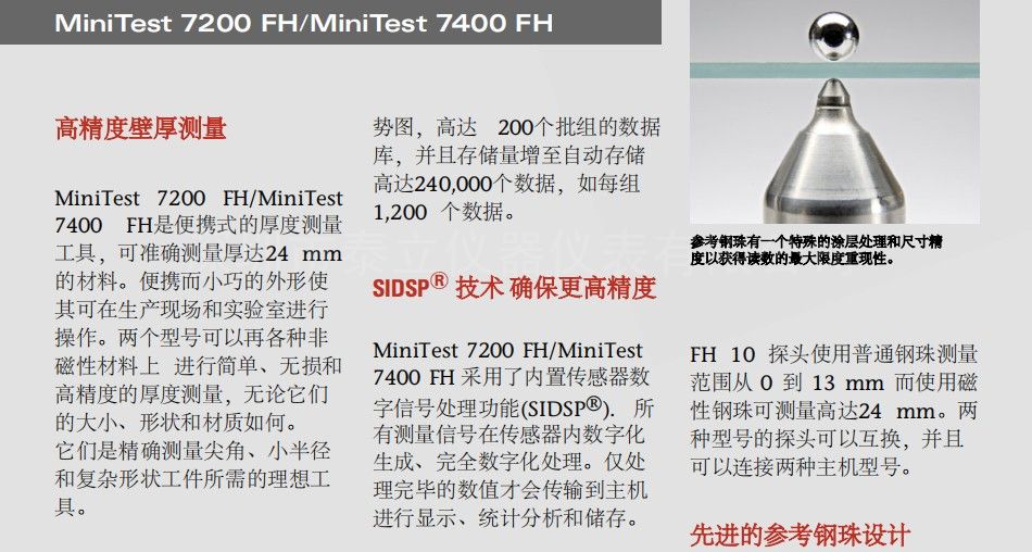 高度厚度測量MiniTest 7400 FH / MiniTest 7200 FH 是便攜式的厚度測量工具,可準(zhǔn)確測量厚達(dá)10mm的材料。便攜而小巧的外形使其可在生產(chǎn)現(xiàn)場和實驗室進(jìn)行操作。