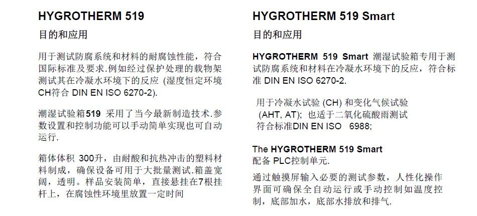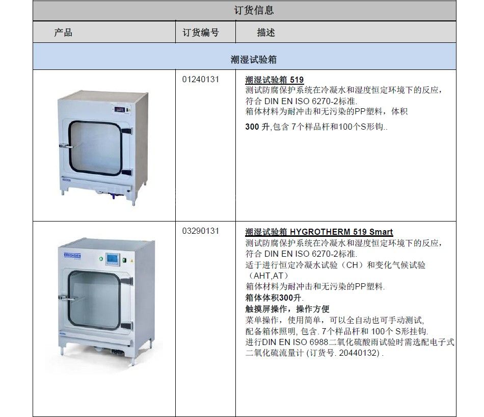 目的和應(yīng)用用于測試防腐系統(tǒng)和材料的耐腐蝕性能,符合國際標(biāo)準(zhǔn)及要求.例如經(jīng)過保護(hù)處理的載物架測試其在冷凝水環(huán)境下的反應(yīng) (濕度恒定環(huán)境CH符合 DIN EN ISO 6270-2).