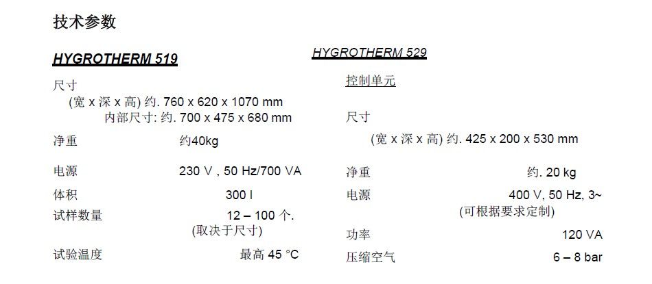 德國儀力信潮濕試驗箱HYGROTHERM519/529