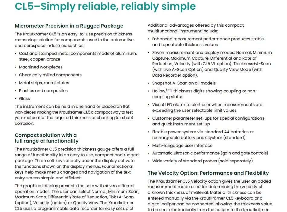 CL 5是使用簡(jiǎn)便的精密厚度測(cè)量工具,主要用于汽車、通訊、航空航天工業(yè)中的零部件,尤其適合以下材料的精密測(cè)量: