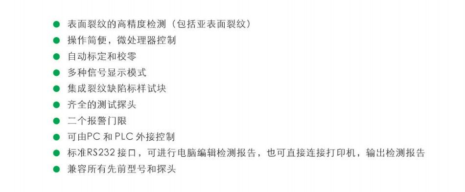 *運(yùn)用現(xiàn)代微處理器技術(shù)和標(biāo)準(zhǔn)的RS232轉(zhuǎn)接口,探傷狀況文件可以打印或者儲(chǔ)存在電腦中,可以運(yùn)用PC或者PLC系統(tǒng)控制此設(shè)備,達(dá)到自動(dòng)的簡(jiǎn)單測(cè)試。