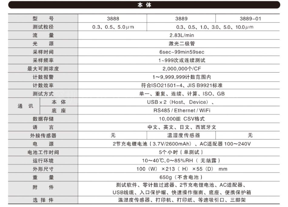 手持式塵埃粒子計(jì)數(shù)器MODEL 3888/3889/3889-01