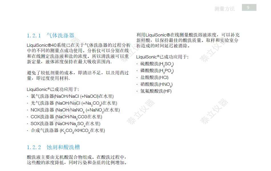 在線分析監(jiān)測:氣體洗滌器 蝕刻槽 硫酸 /煙酸 甲醇/甲醛