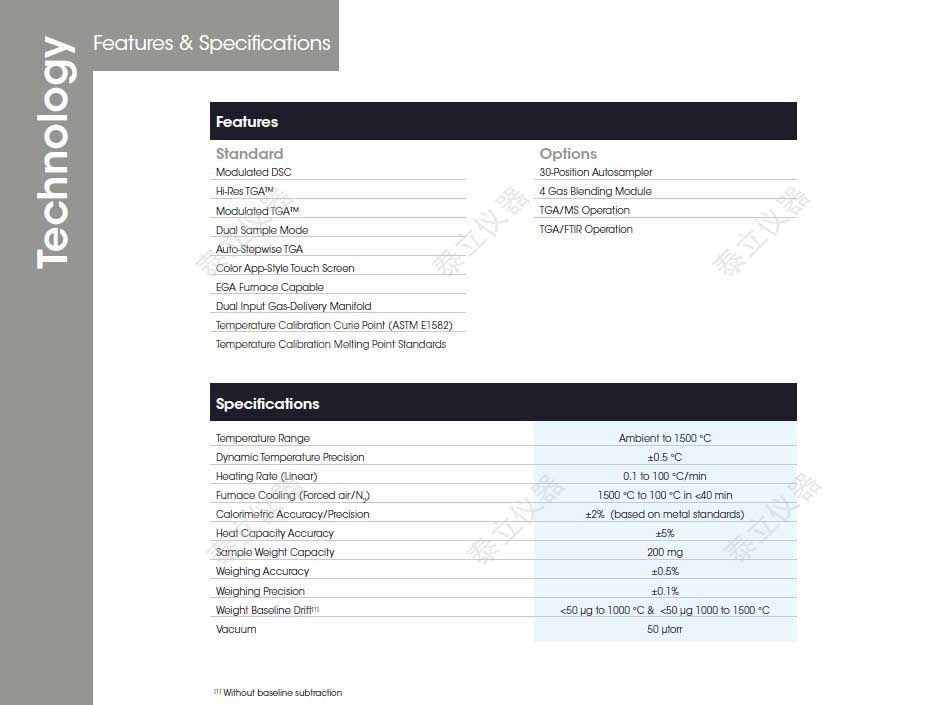 重量基線漂移[1] < 50 µg( 高溫度為 1000°C)及 < 50 µg(1000 至 1500 °C