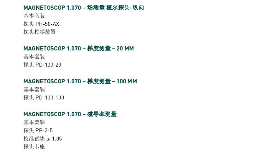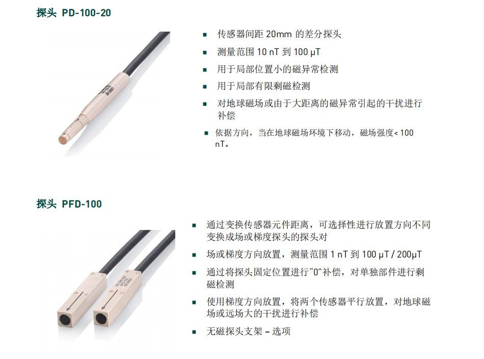 完整套裝包括可靈活放置的PFD-100探頭,根據(jù)探頭方向放置不同測量絕對磁場或梯度磁場