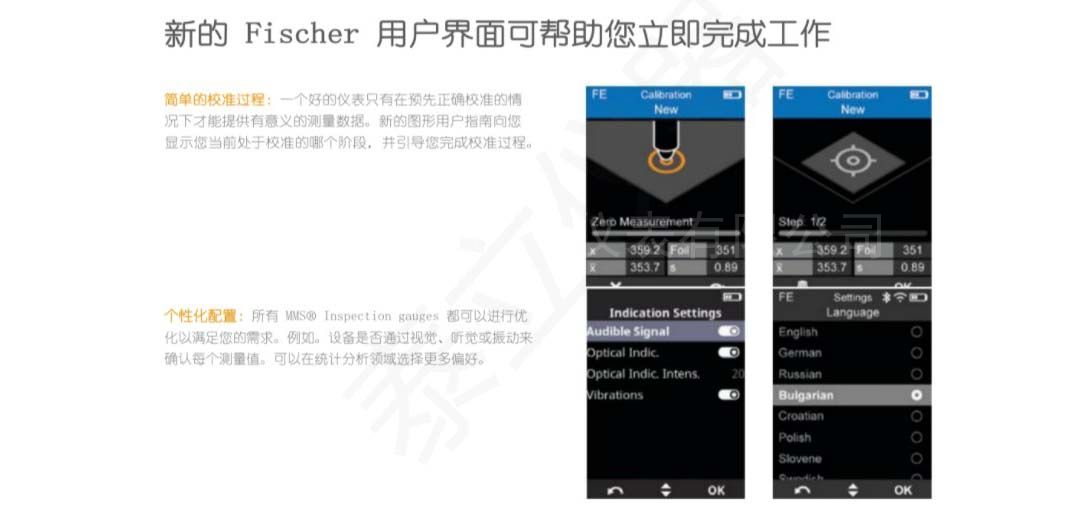 簡單的校準(zhǔn)過程: 良好的儀器只有在預(yù)先正確校準(zhǔn)之后才提供有意義的測量數(shù)據(jù),F(xiàn)ischer新的圖形用戶指南將顯示您當(dāng)前所處的校準(zhǔn)階段。