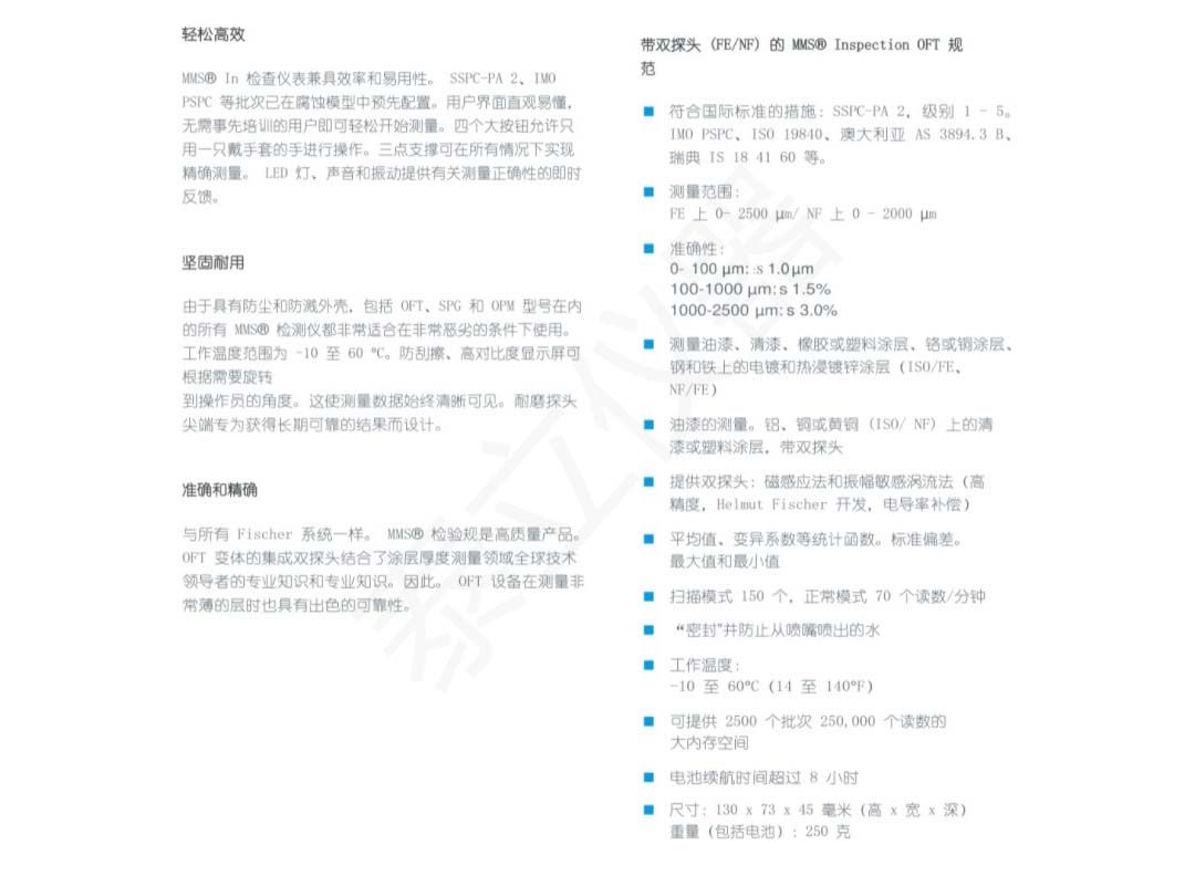 一與每個Fischer系統(tǒng)一樣,MMS Inspection DFT 是一種高品質(zhì)產(chǎn)品集成的兩用探頭結(jié)合了涂層厚度測量。因此,當(dāng)測量非常薄的涂層時,該裝置還具有高可靠性。