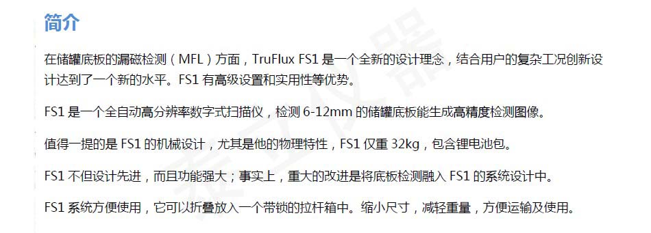 FS1是一個全自動高分辨率數(shù)字式掃描儀,檢測6-12mm的儲罐底板能生成高精度檢測圖像。