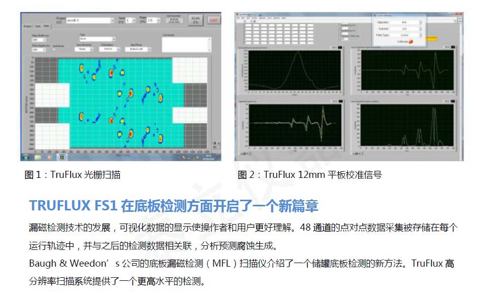 Baugh & Weedon’s公司的底板漏磁檢測(MFL)掃描儀介紹了一個儲罐底板檢測的新方法。TruFlux高分辨率掃描系統(tǒng)提供了一個更高水平的檢測。