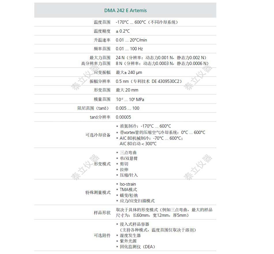 溫度范圍 -170°C - 600°C。廣泛應用于熱塑性與熱固性塑料、橡膠、涂料、金屬與合金、無機材料、復合材料等領(lǐng)域。