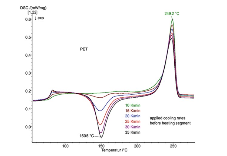 測定吸熱/放熱行為:可確定起始點,峰值,拐點和終止點溫度,可進(jìn)行自動峰搜索。峰面積/熱焓計算:可選多種不同類型基線,可進(jìn)行部分面積分析。峰的綜合分析:在一次標(biāo)注中可同時得到溫度、面積、峰高與峰寬等各種信息。結(jié)晶度計算。全面的玻璃化轉(zhuǎn)變分析。自動基線扣除。比熱測試與分析。 BeFlat:使用多項式擬合,對不同升溫速率下的基線進(jìn)行擬合扣除。 Tau-R 模式: 將儀器的時間常數(shù)與熱阻因素納入計算并加以扣除,能得到更尖銳的 DSC 峰。 TM-DSC(溫度調(diào)制 DSC,可選):可以從總熱流曲線中分離可逆熱流(熱力學(xué))和不可逆熱流(動力學(xué))效應(yīng)。另有符合 GLP、GMP、21CFR 等標(biāo)準(zhǔn)的特別軟件功能。