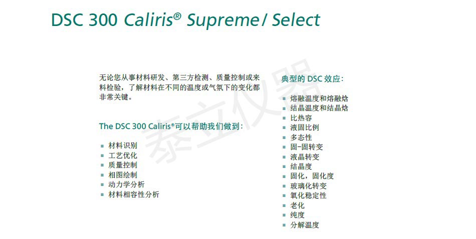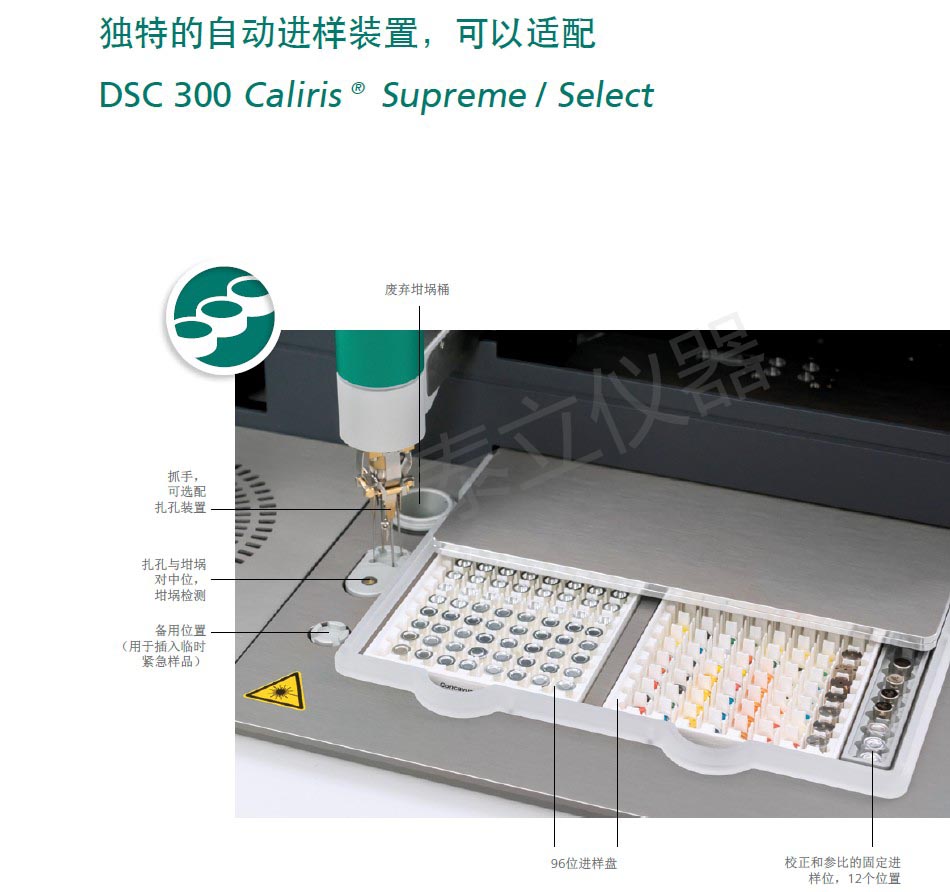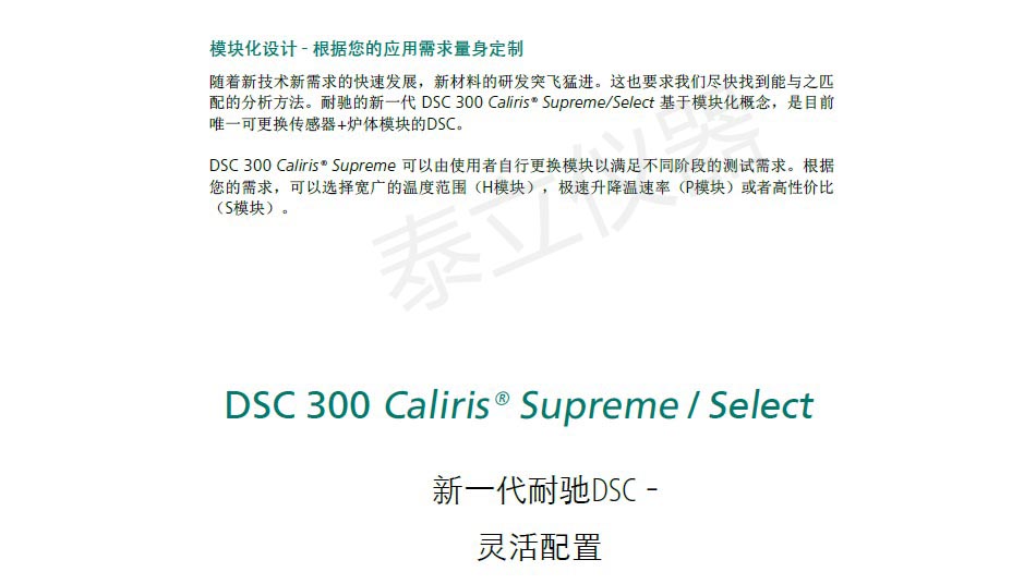 DSC 300 Caliris Select 配備P模塊則構(gòu)成了一臺(tái)高精度、可靠的DSC系統(tǒng),且能夠?qū)崿F(xiàn)極高的升降溫速度。溫度范圍: -170 ... 600°C
