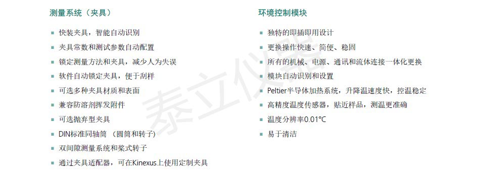 Kinexus 是一套模塊化的流變儀,配備多種即插即用功能模塊,包括不同測量模式、環(huán)境控制模塊等。它還可實現(xiàn)先進的“標(biāo)準(zhǔn)作業(yè)程序”(SOP)測量模式。