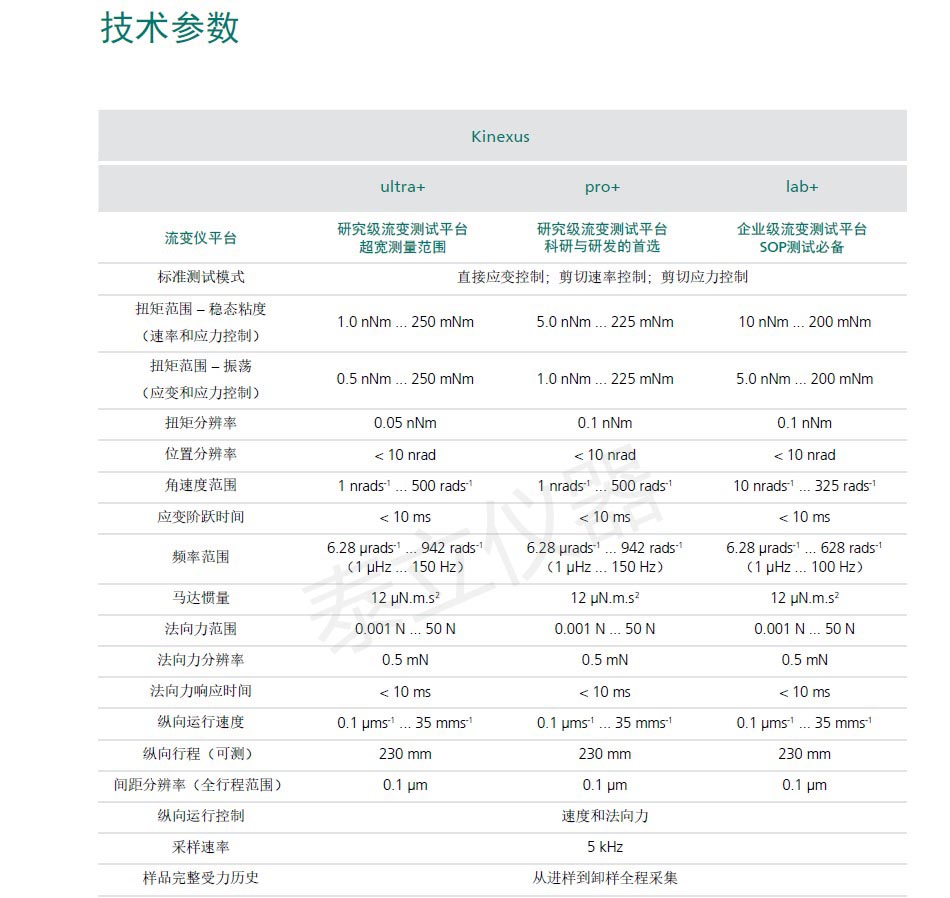 表征高分子材料的分子量和分子量分布,能快速、簡便、有效地進行原材料、中間產(chǎn)品和*終產(chǎn)品的質(zhì)量檢測和質(zhì)量控制幫助用戶進行原料檢驗、加工工藝設(shè)計和預(yù)測產(chǎn)品性能。創(chuàng)新的雙向施力功能。 Kinexus 具有出色的縱向行程和間距控制功能,因此可以在剪切和軸向范圍內(nèi)進行測試。以上特性結(jié)合超響應(yīng)和高度靈敏的法向力,使儀器具備優(yōu)異的測試性能。支持流變操作的各種模式 – 應(yīng)力控制、剪切速率控制、應(yīng)變振幅控制的振蕩模式,可精確控制樣品的應(yīng)變歷史。