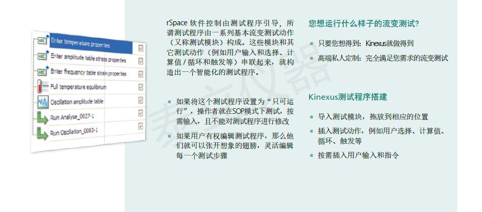 Kinexus 是一套模塊化的流變儀,配備多種即插即用功能模塊,包括不同測量模式、環(huán)境控制模塊等。它還可實(shí)現(xiàn)先進(jìn)的“標(biāo)準(zhǔn)作業(yè)程序”(SOP)測量模式。