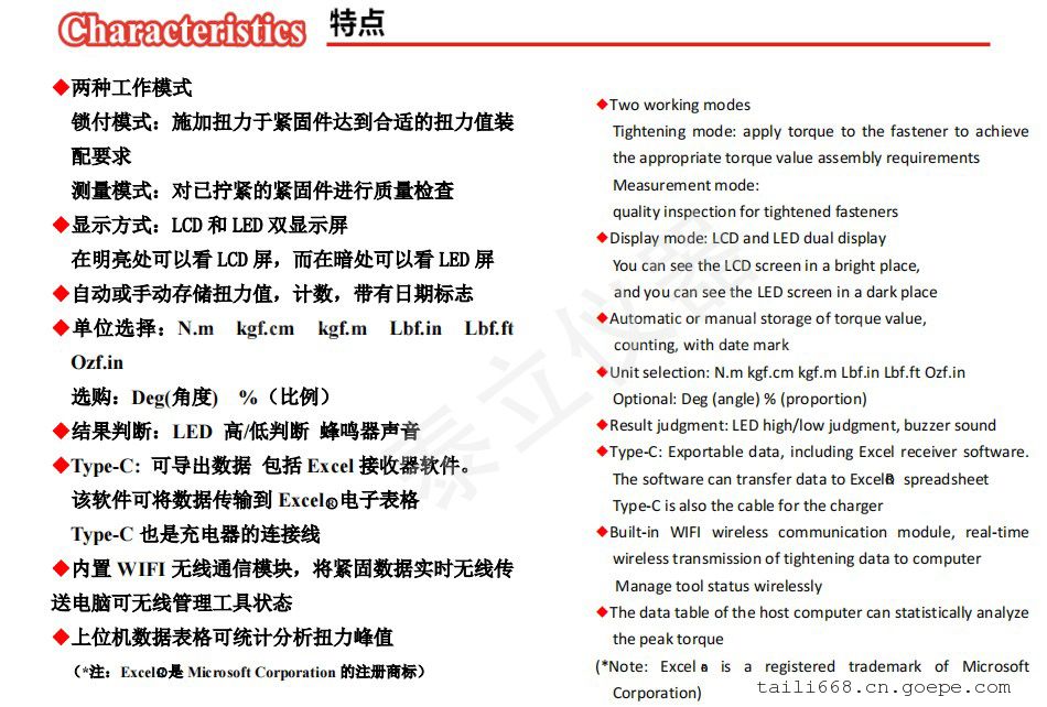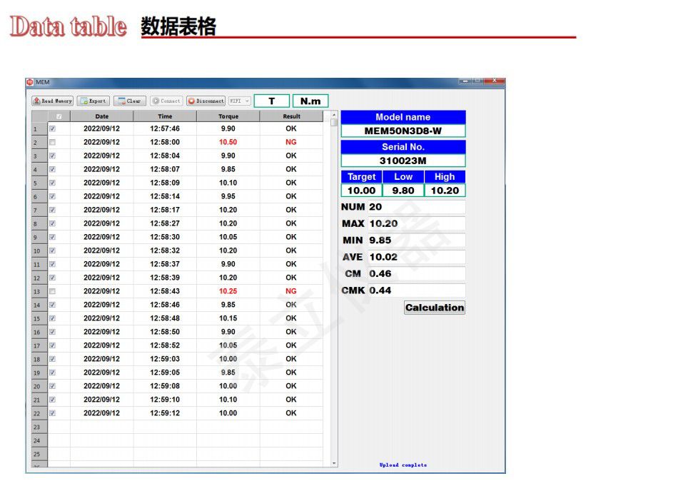 ◆上位機(jī)數(shù)據(jù)表格可統(tǒng)計分析扭力峰值(*注:Excel○R是 Microsoft Corporation 的注冊商標(biāo))