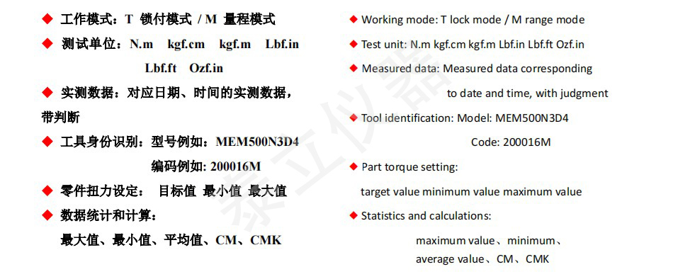 ◆自動或手動存儲扭力值,計數(shù),帶有日期標(biāo)志