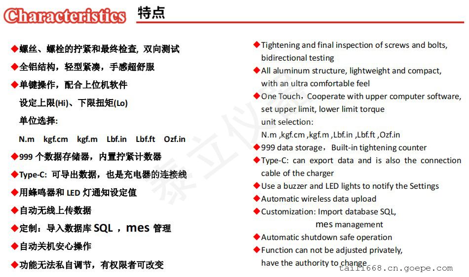 ◆One Touch,Cooperate with upper computer software, set upper limit, lower limit torque