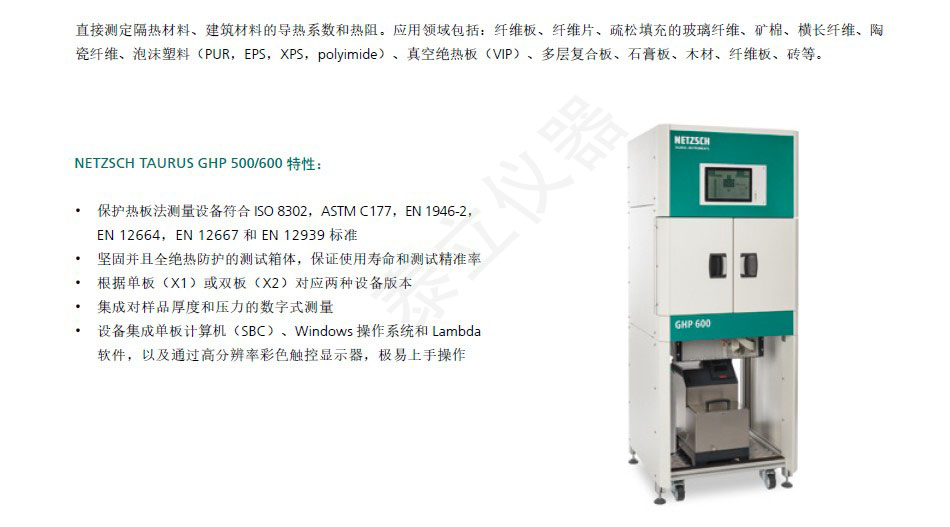 GHP是一種適用于絕熱材料的研究與測試的理想工具,采用國際標準的保護熱板法,直接測量絕熱材料和建筑材料的導(dǎo)熱系數(shù)。