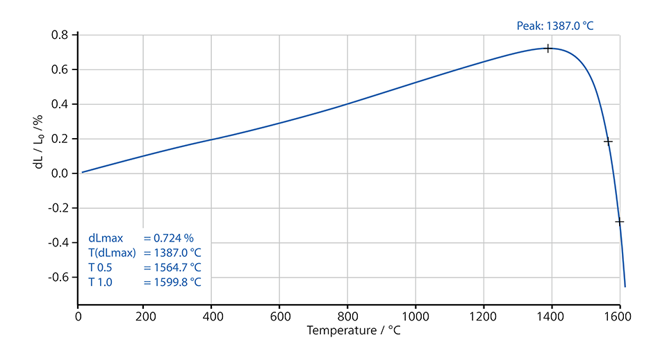 RUL(高溫荷軟測量)是在升溫條件與一定的負載下測量耐火陶瓷產品的形變行為。CIC (壓縮蠕變測試) 指的是在高溫下長時間恒溫、在一定的負載下耐火材料試樣的收縮率。