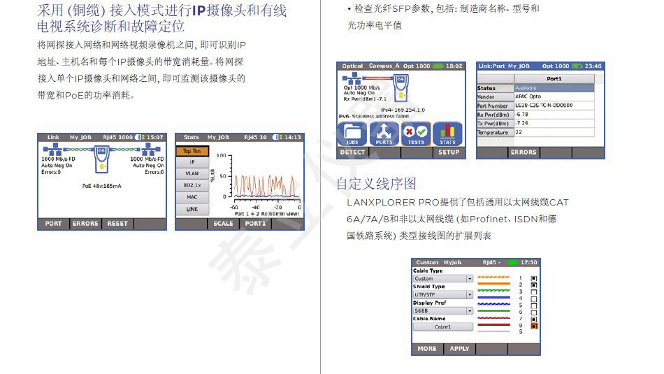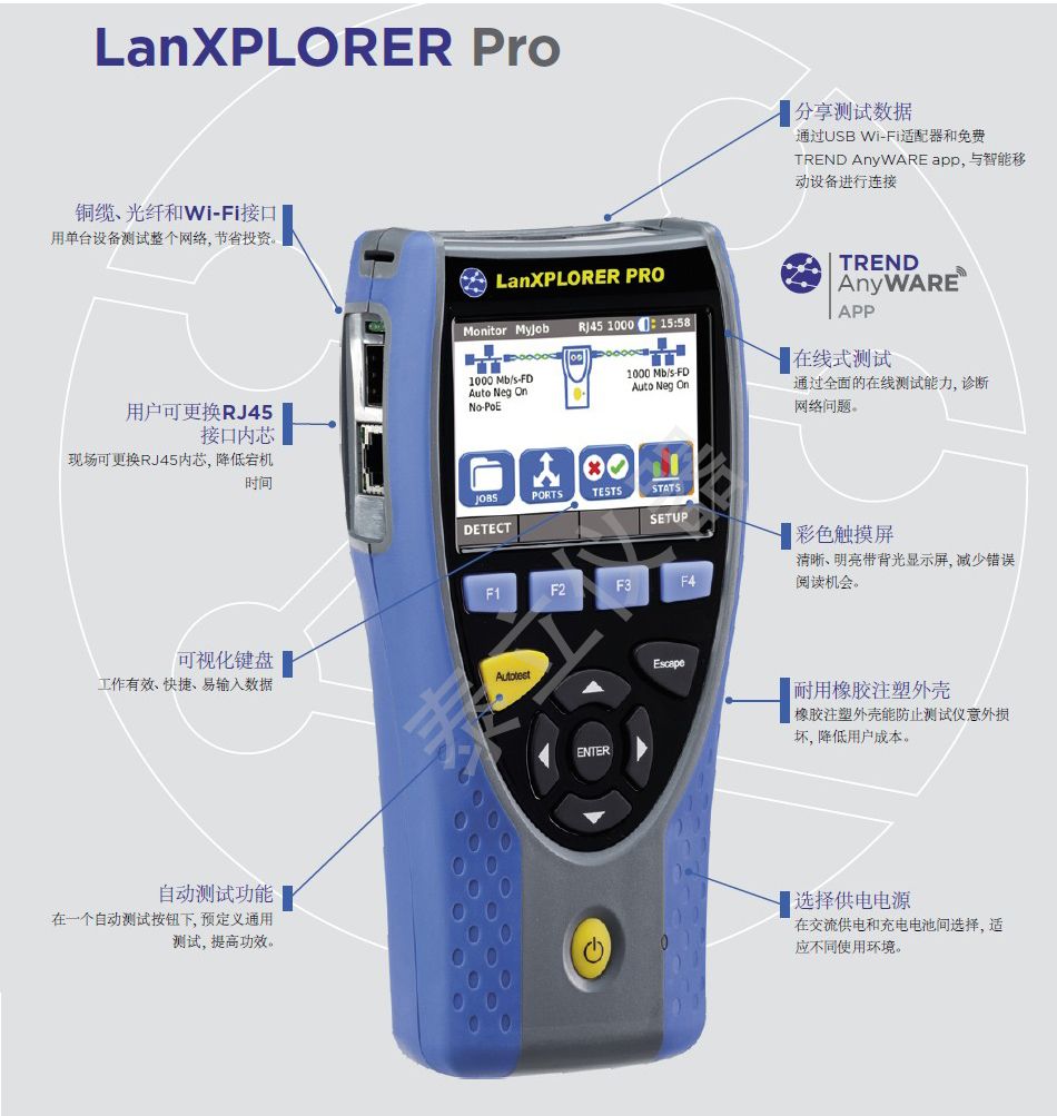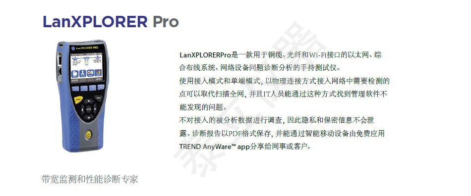 LanXPLORER Pro 是一款用于銅纜、光纖和Wi-Fi接口的以太網(wǎng)、綜合布線系統(tǒng)、網(wǎng)絡(luò)設(shè)備問題診斷分析的手持測試儀。