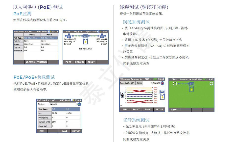線纜測試(銅纜和光纜)提供一系列測試幫助定位故障。