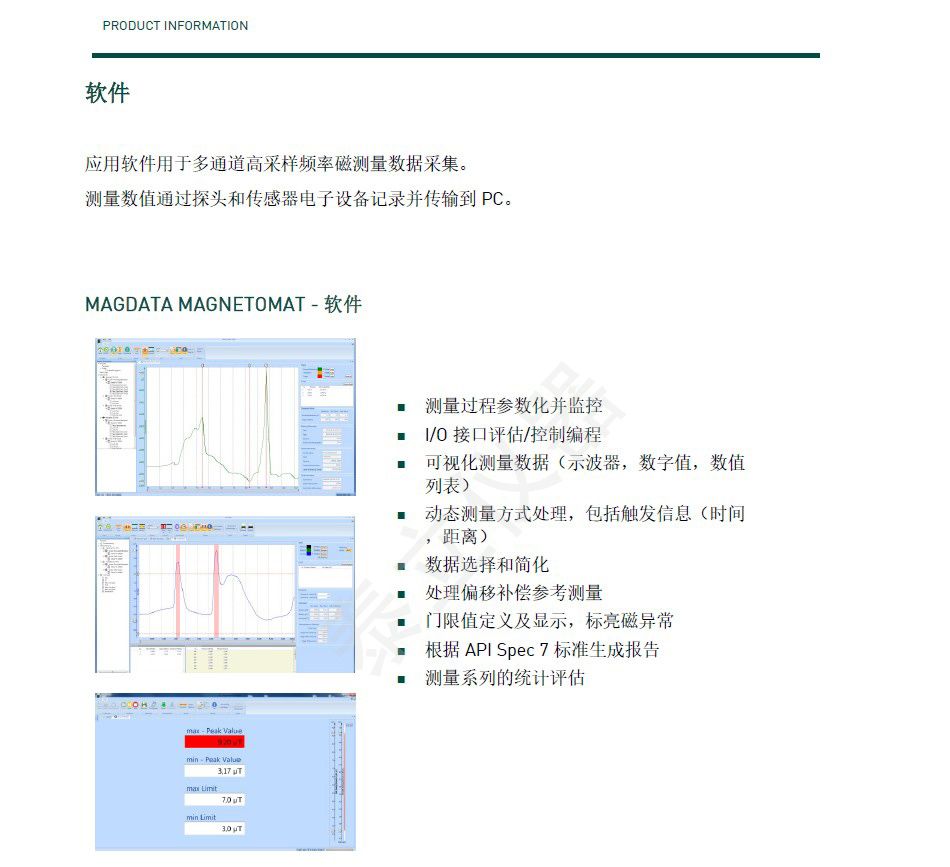 MAGDATA 應(yīng)用軟件用于參數(shù)設(shè)置,實(shí)時(shí)測(cè)量結(jié)果顯示,數(shù)據(jù)采樣及報(bào)告生成多種探頭選擇適用于不同應(yīng)用