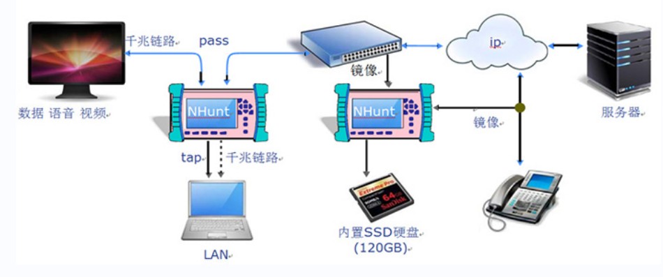 Net.Hunter 是一種基于FPGA硬件的網(wǎng)絡數(shù)據(jù)捕獲設備,能夠監(jiān)測全雙工千兆鏈路中傳輸?shù)娜我庖粋數(shù)據(jù)包;無論是符合觸發(fā)條件,還是經(jīng)過過濾器篩選的數(shù)據(jù)包都可以保存到本地的硬盤,或是將其鏡像到網(wǎng)絡中,然后通過軟件進行詳細分析,以便找到網(wǎng)絡故障的根源。
