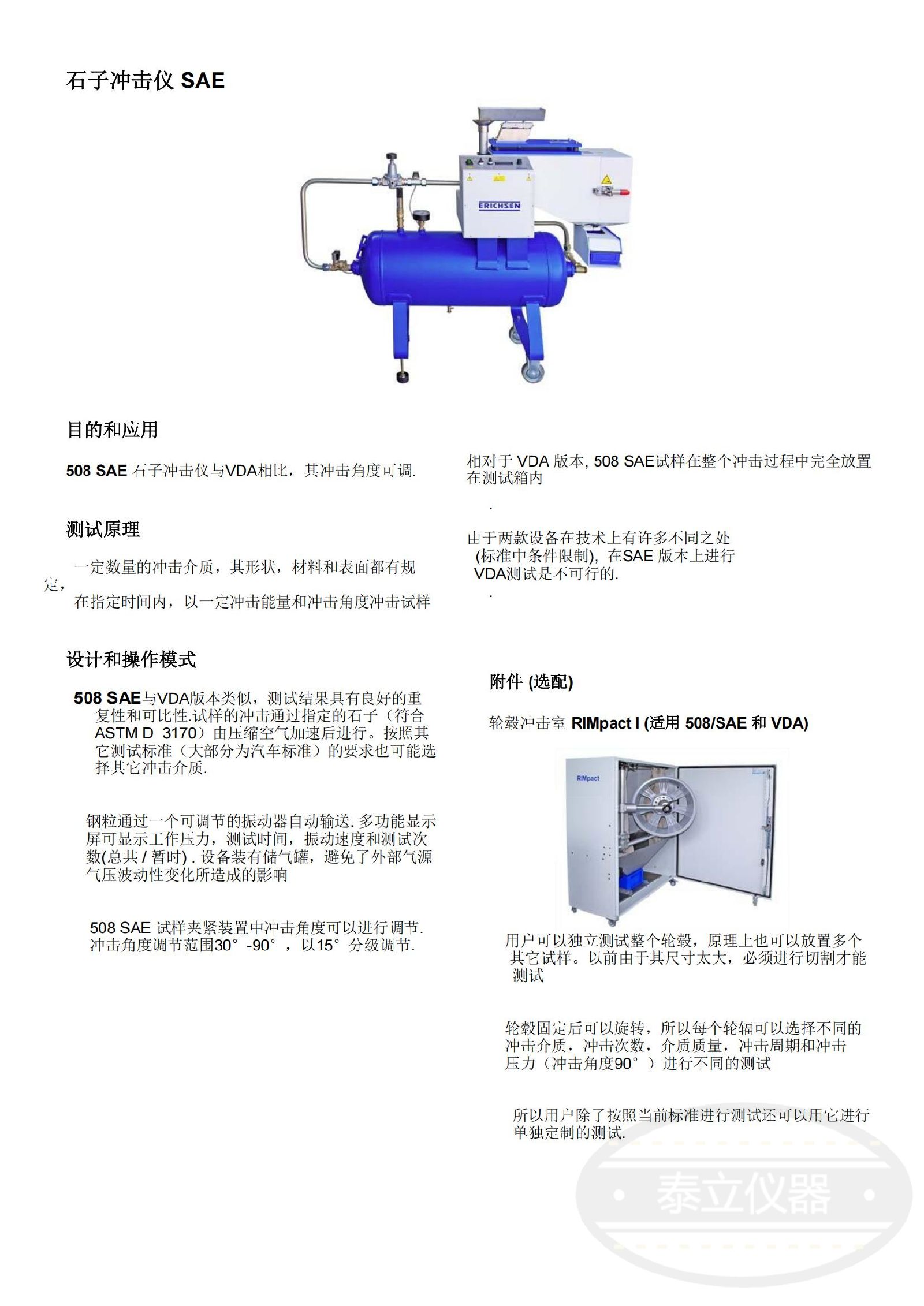 508 VDA 石子沖擊儀起初是和德國汽車工業(yè)協(xié)會(huì) (VDA)共同研發(fā)的,但現(xiàn)在也符合其它國家 和國際標(biāo)準(zhǔn)其用于測試單層或多層油漆或類似涂層對于高速運(yùn)動(dòng)的小石子的抗沖擊性能,用于模擬運(yùn)輸行業(yè)中的汽車所遇到的情況.新款 508 SAE 石子沖擊儀是一款以石子進(jìn)行 沖擊測試的儀器,相對于VDA其沖擊角度可調(diào)