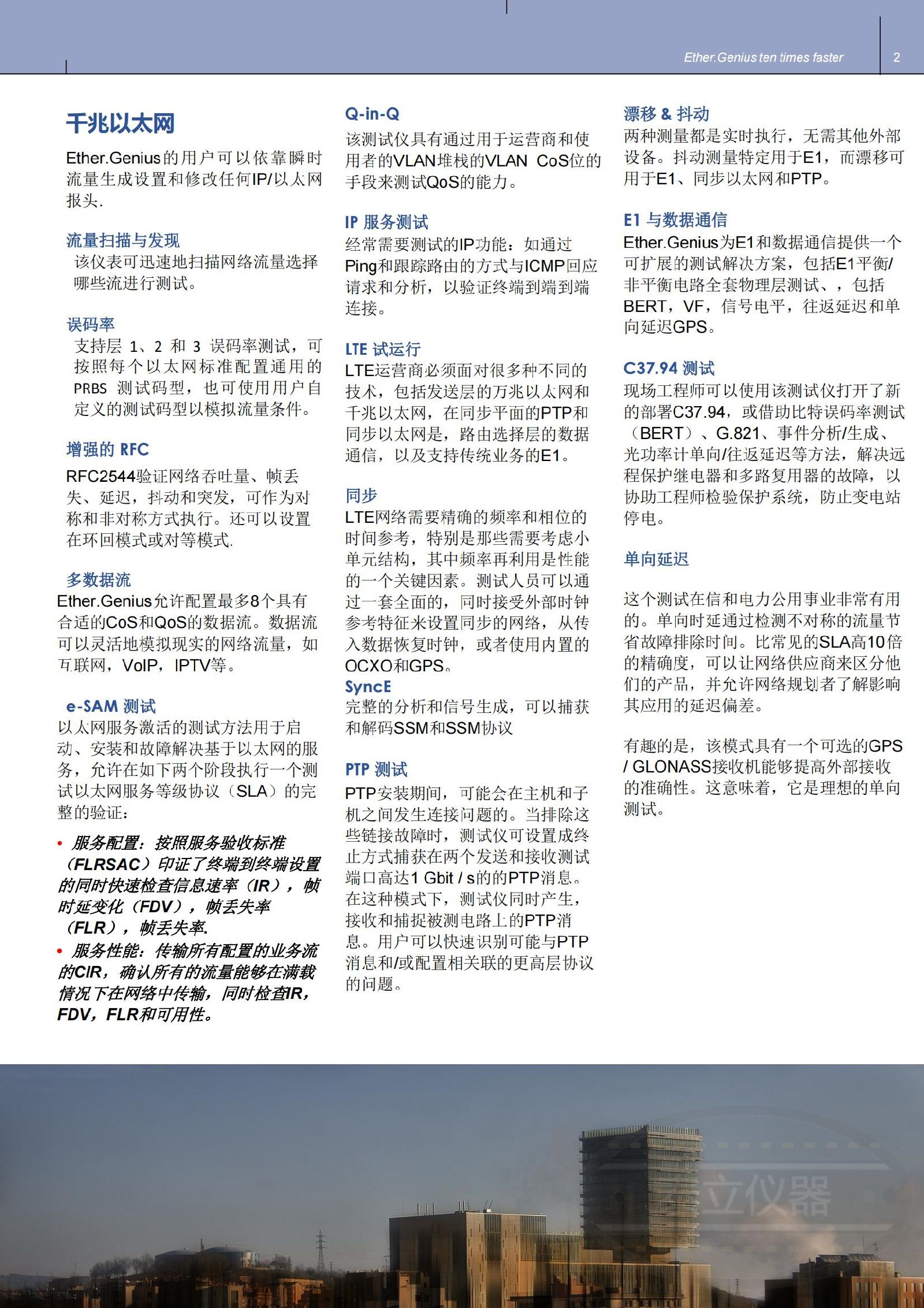 Ether.Genius 是一款同時適合于現(xiàn)場測試和實驗室測試,小巧便攜的手持式多業(yè)務測試儀?梢詼y試高達 1 Gb/s 的千兆以太網(wǎng)和 IP 網(wǎng)絡。配備了的Sync-E/PTP 協(xié)議,它還具有多個光和電氣接口用于GbE/PDH/T1/E1/E0/C37.94 和數(shù)據(jù)通信等測試應用?稍谒薪涌谶M行性能測試和質(zhì)量測試并且具有仿真PTP/SyncE的能力,同時具有很好的頻率/相位和 PDV 指標的能力。另外,它還可選配基于GPS系統(tǒng)的銣鐘(Rubidium)用于獲得精準的時鐘。