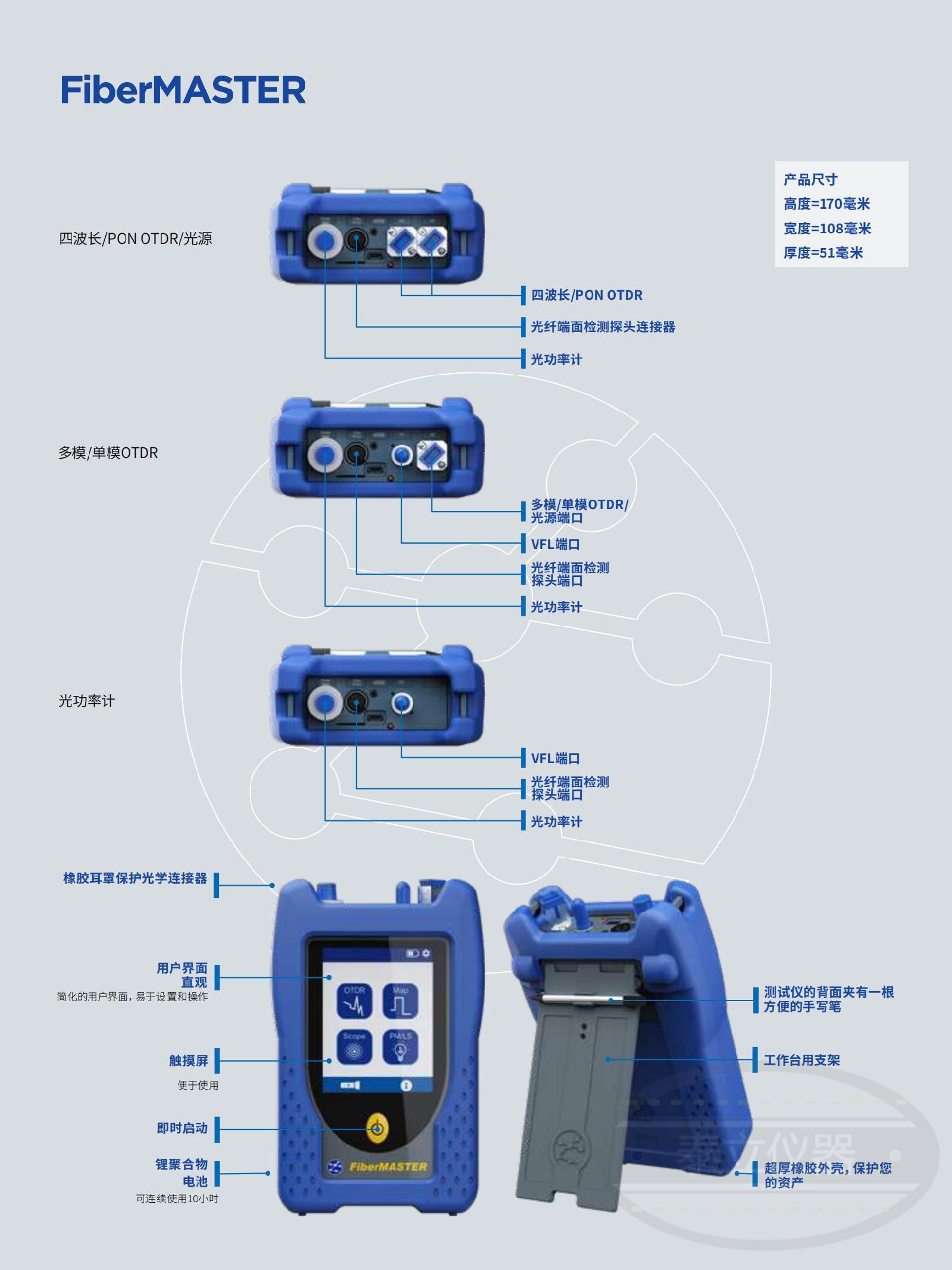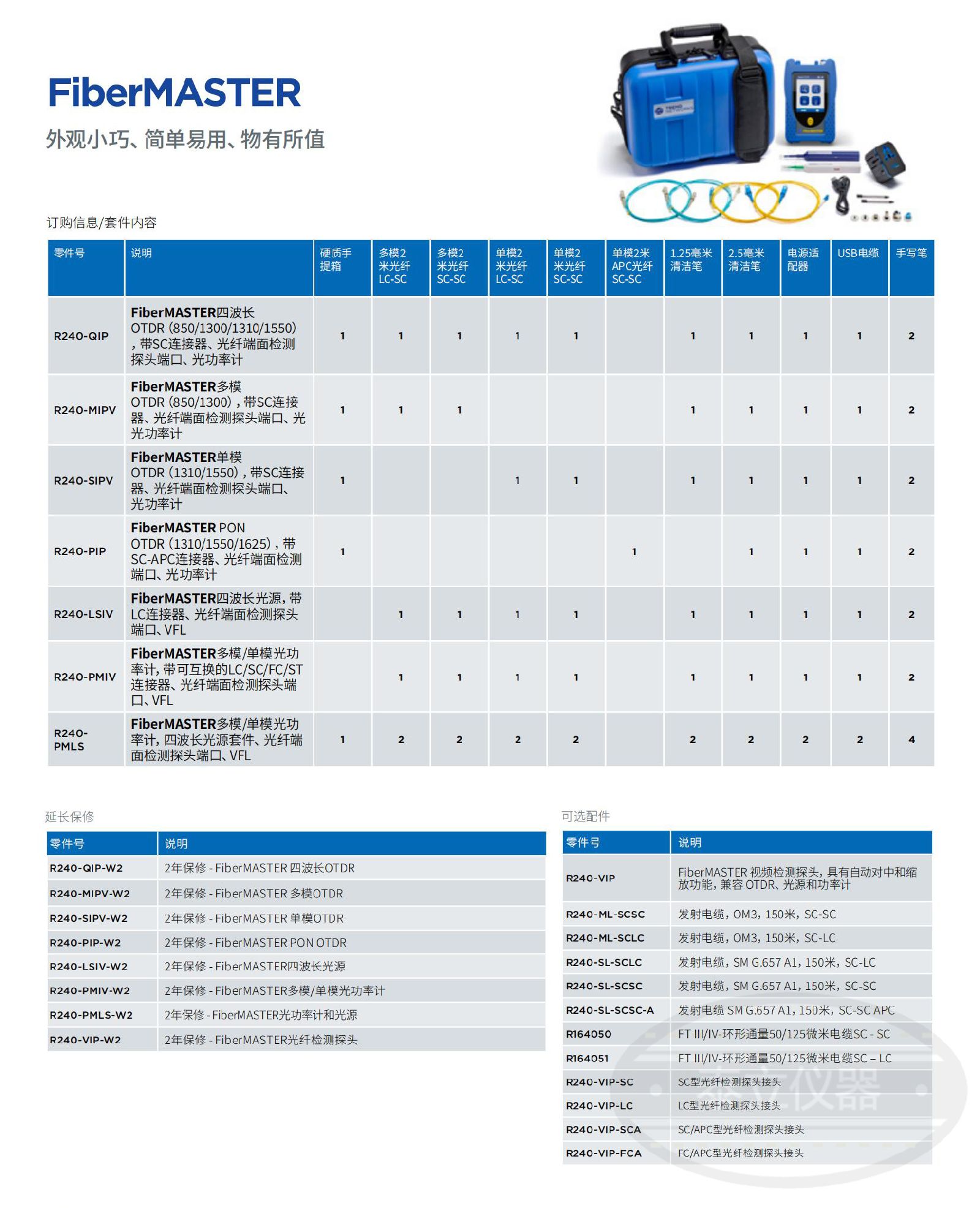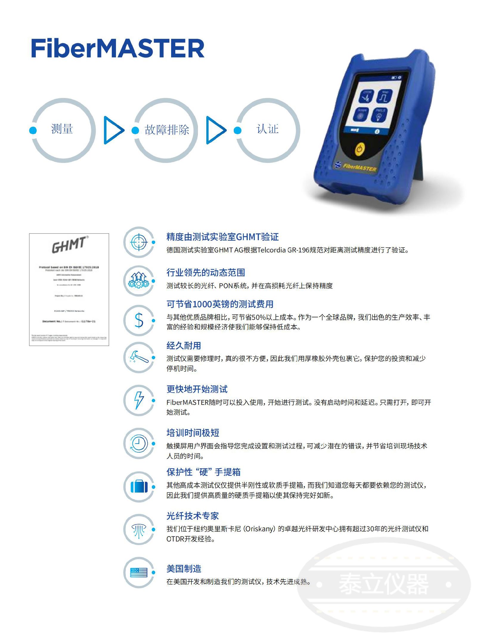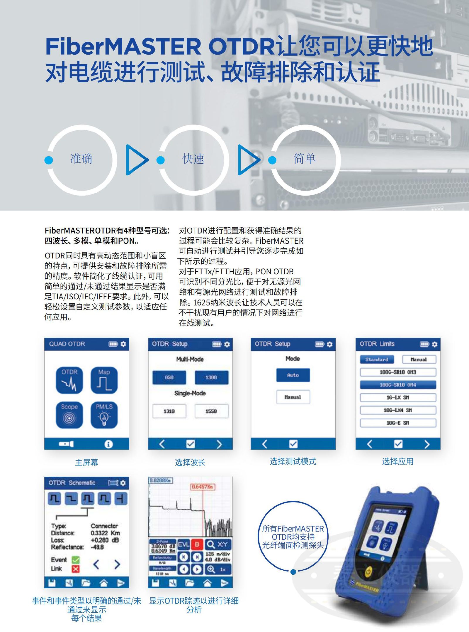 這取決于速度和準(zhǔn)確性對你的重要性。FiberMASTER–尺寸、簡潔、價值不妥協(xié),美國制造,德國計量。新的FiberMASTER系列光纖測試儀將使驗證、故障排除和認(rèn)證光纖電纜變得更容易、更快速。OTDR、PON OTDR、功率表和光源以及檢查探頭將使電纜安裝人員能夠獲得所需的可靠測試結(jié)果。作為世界上更小的OTDR之一,您會發(fā)現(xiàn)它們更易于攜帶和操作,而加固的外殼將保護(hù)您的投資。簡化的設(shè)置選項使其易于使用,為您節(jié)省了培訓(xùn)時間,并降低了出錯的可能性。我們的紐約卓越研發(fā)中心擁有超過30年的OTDR設(shè)計經(jīng)驗,為您提供*先進(jìn)、緊湊的光學(xué)測試系統(tǒng)。