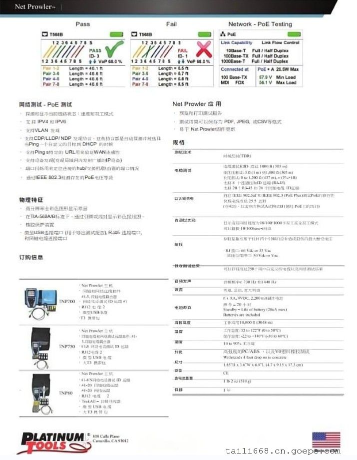 美國PlatinumTools布線和網(wǎng)絡(luò)測試儀Net Prowler TNP700技術(shù)指標(biāo)