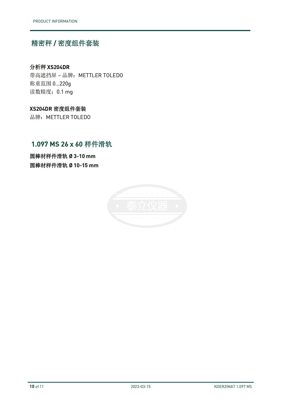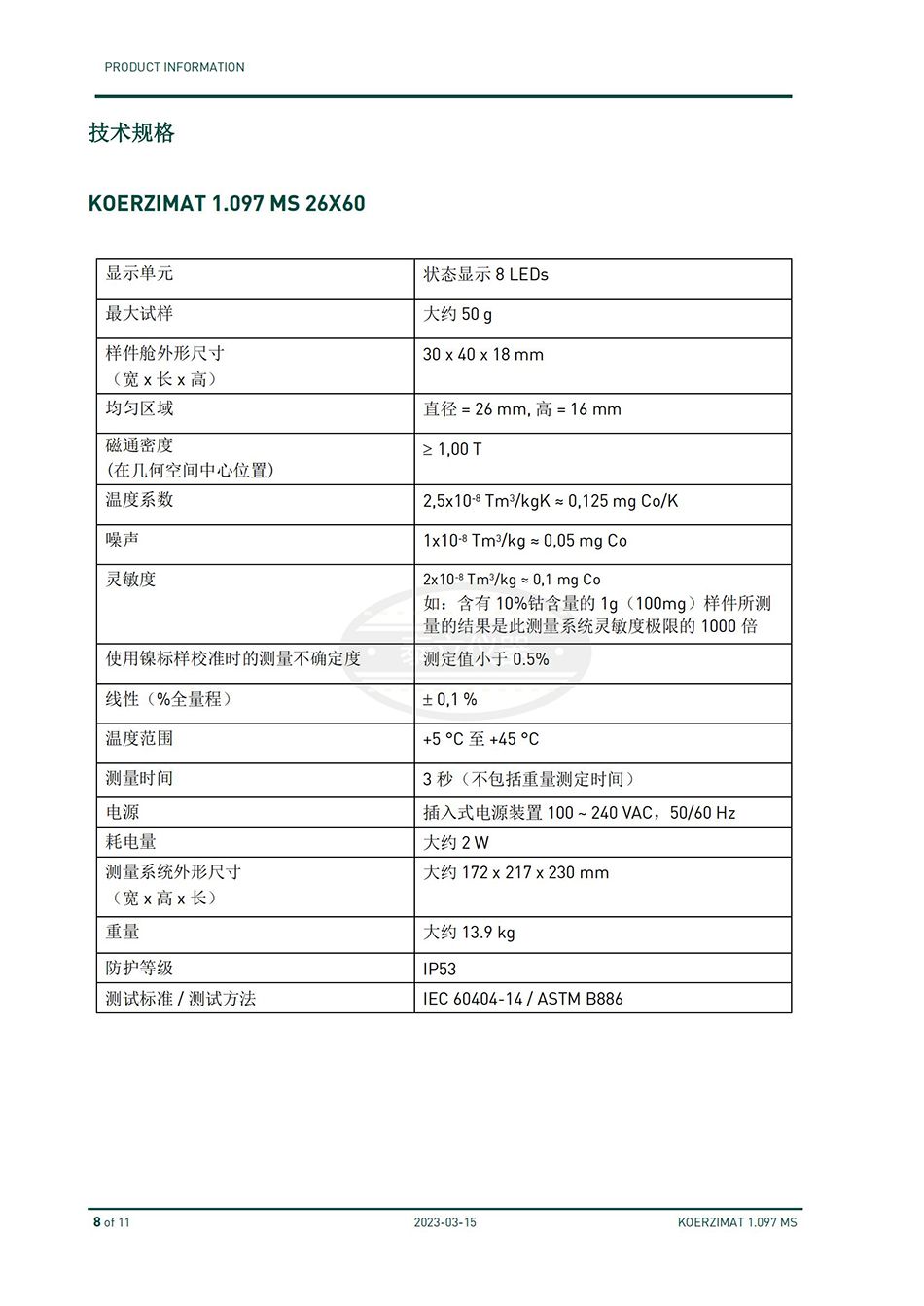 KOERZIMAT 1.097 MS 31X69 特點(diǎn)