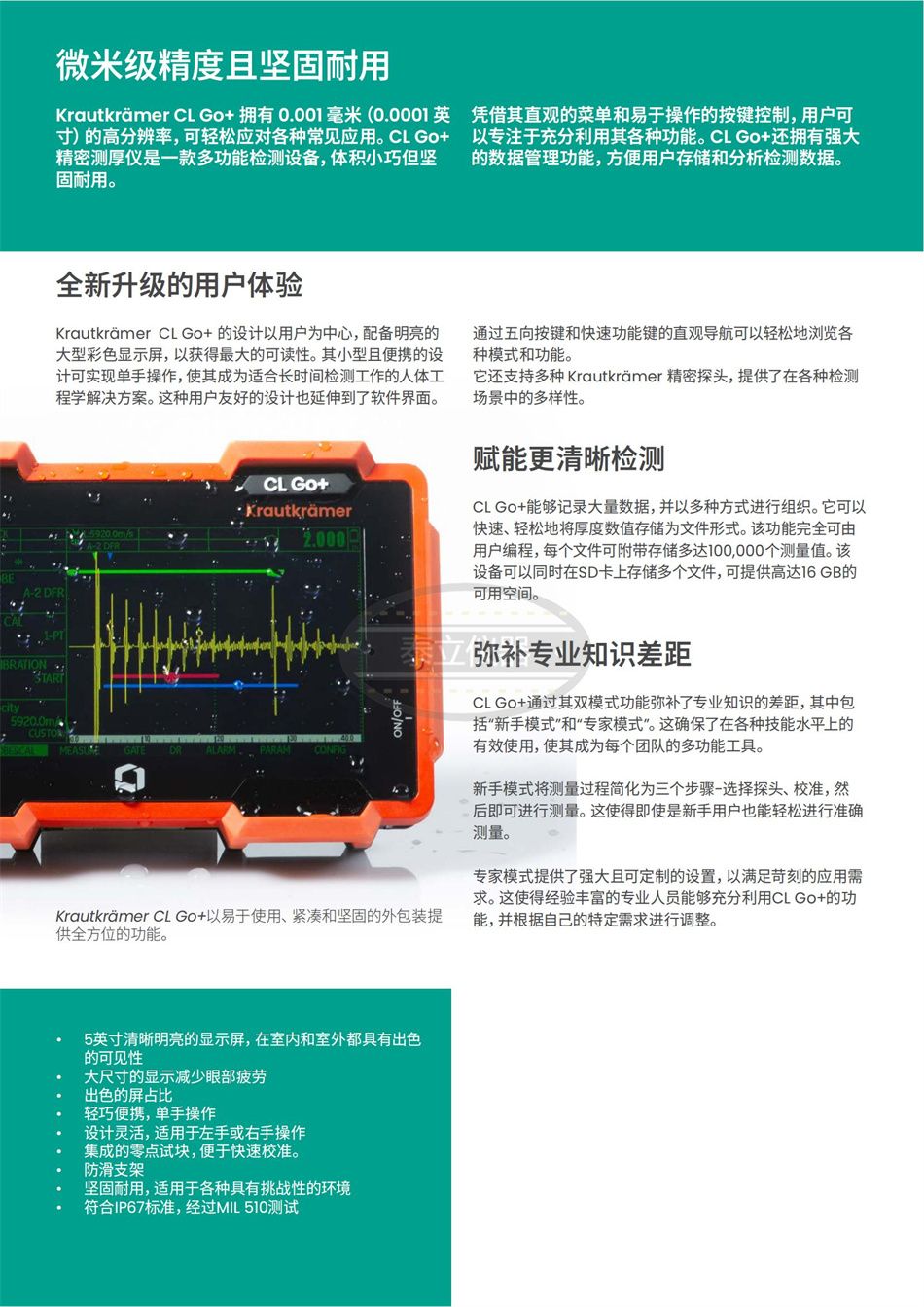 Krautkrämer CL Go+ 的設(shè)計(jì)以用戶(hù)為中心,配備明亮的大型彩色顯示屏,以獲得*大的可讀性。其小型且便攜的設(shè)計(jì)可實(shí)現(xiàn)單手操作,使其成為適合長(zhǎng)時(shí)間檢測(cè)工作的人體工程學(xué)解決方案。這種用戶(hù)友好的設(shè)計(jì)也延伸到了軟件界面。