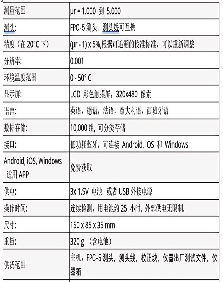 可用于確定材料和組件的相對(duì)磁導(dǎo)率µr,其范圍在1.000至5.000之間。