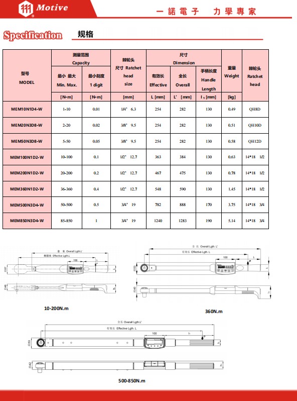 MOTIVE無線數(shù)顯扭力扳手MEM-W系列