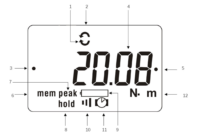 LCD顯示描述1.CW(順時(shí)針)扭力標(biāo)記: