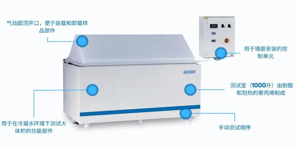 與519相同,用于測(cè)試防腐系統(tǒng)和材料在冷凝水環(huán) 境下的反應(yīng),符合國(guó)際標(biāo)準(zhǔn)和要求,例如經(jīng)過保護(hù) 處理的載物架測(cè)試其在冷凝水環(huán)境下的反應(yīng) (濕度 恒定環(huán)境符合 DIN EN ISO 6270-2).