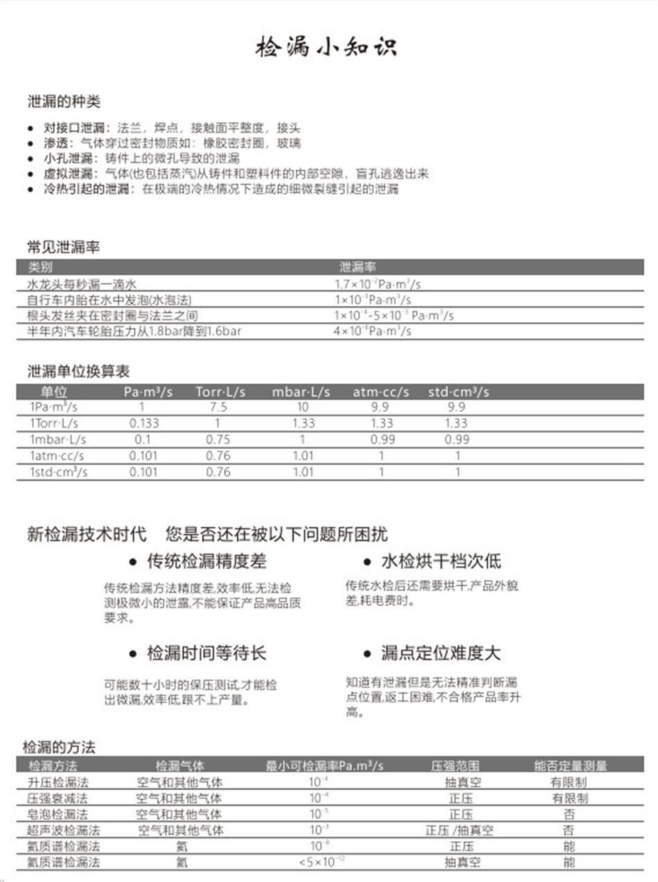 三級(jí)檢漏 檢大漏、檢中漏、微小檢漏