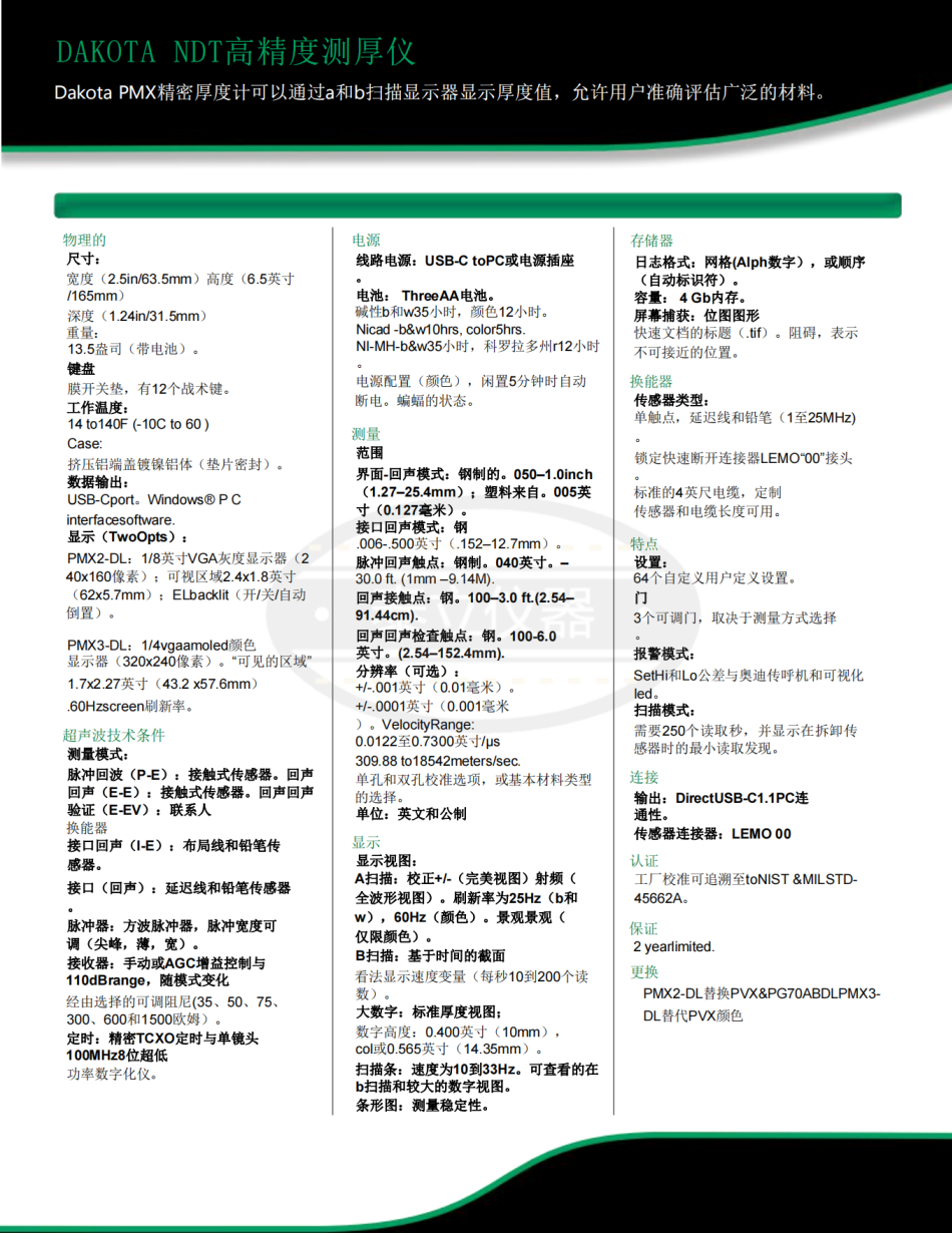 美國(guó)Dakota NDT 高穿透超聲波測(cè)厚儀PMX4-DL