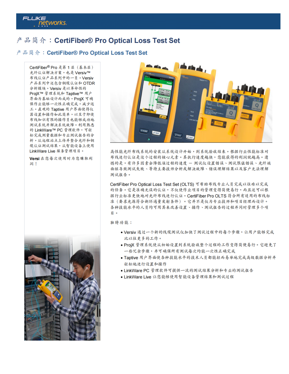 產(chǎn)品型號(hào): CertiFiber Pro OLTS 品 牌: 美國(guó)FLUKE -