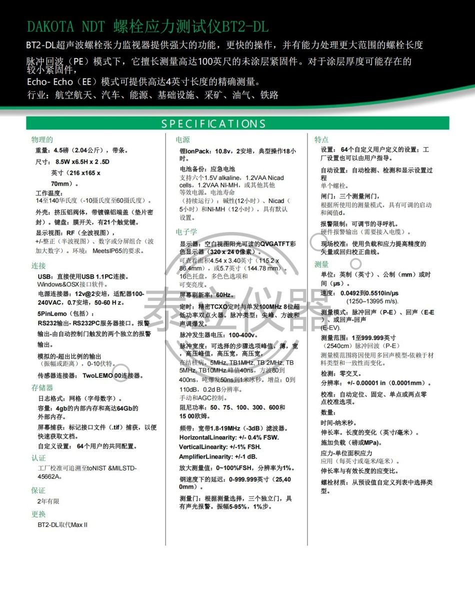 DAKOTA NDT BT2-DL超聲波螺栓張力監(jiān)視器非常準確地測量長度可達100英尺的緊固件,并在整體性能/功率方面得到更高提升!