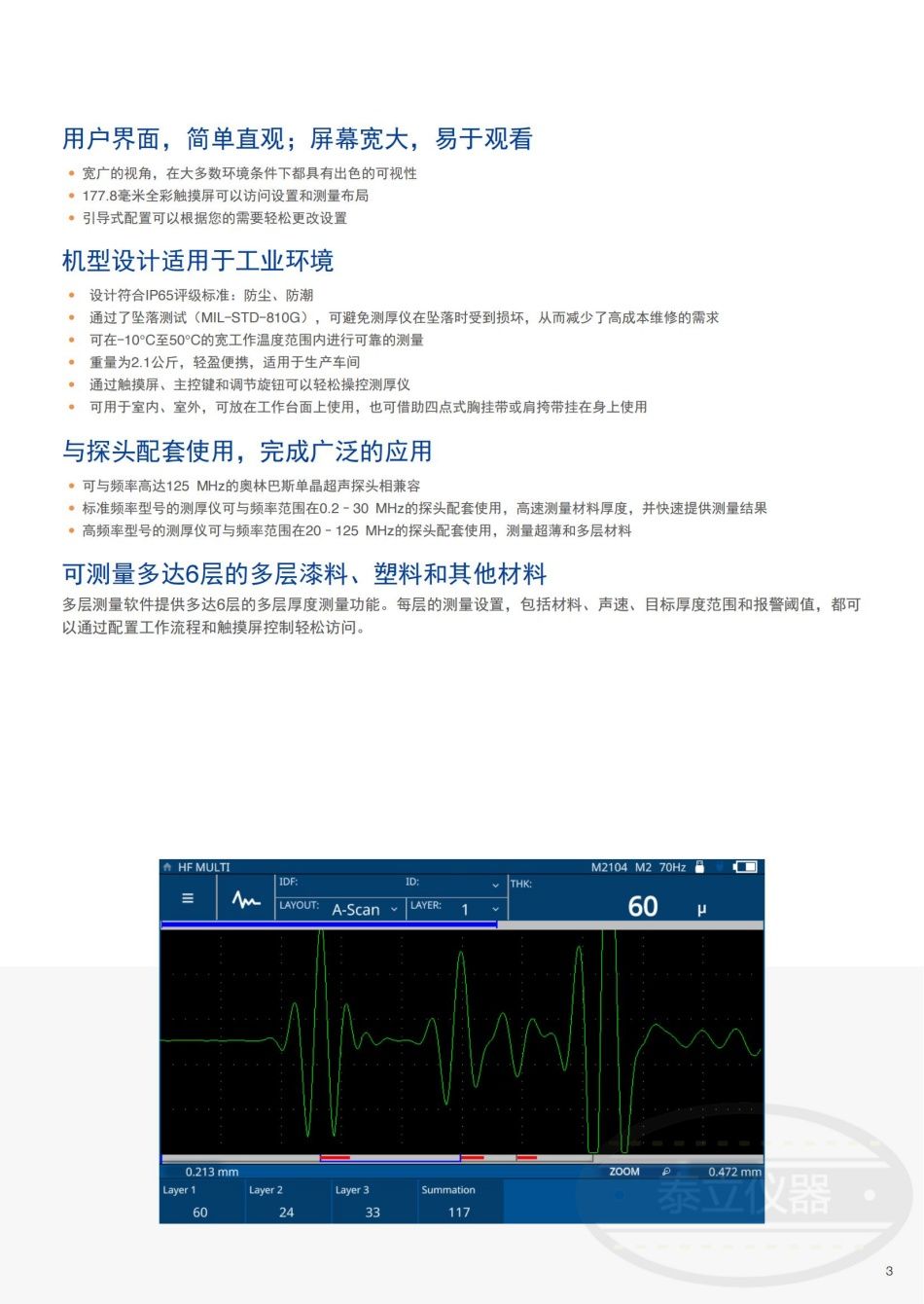 奧林巴斯高精度超聲波測(cè)厚儀72DL PLUS特別研發(fā)的多層測(cè)量軟件,提供*多6層厚度測(cè)量能力,能夠測(cè)量多層漆料、塑料、金屬和涂層等,可以同時(shí)顯示*多六個(gè)獨(dú)立層的厚度,實(shí)現(xiàn)了測(cè)厚檢測(cè)能力的飛躍式發(fā)展。