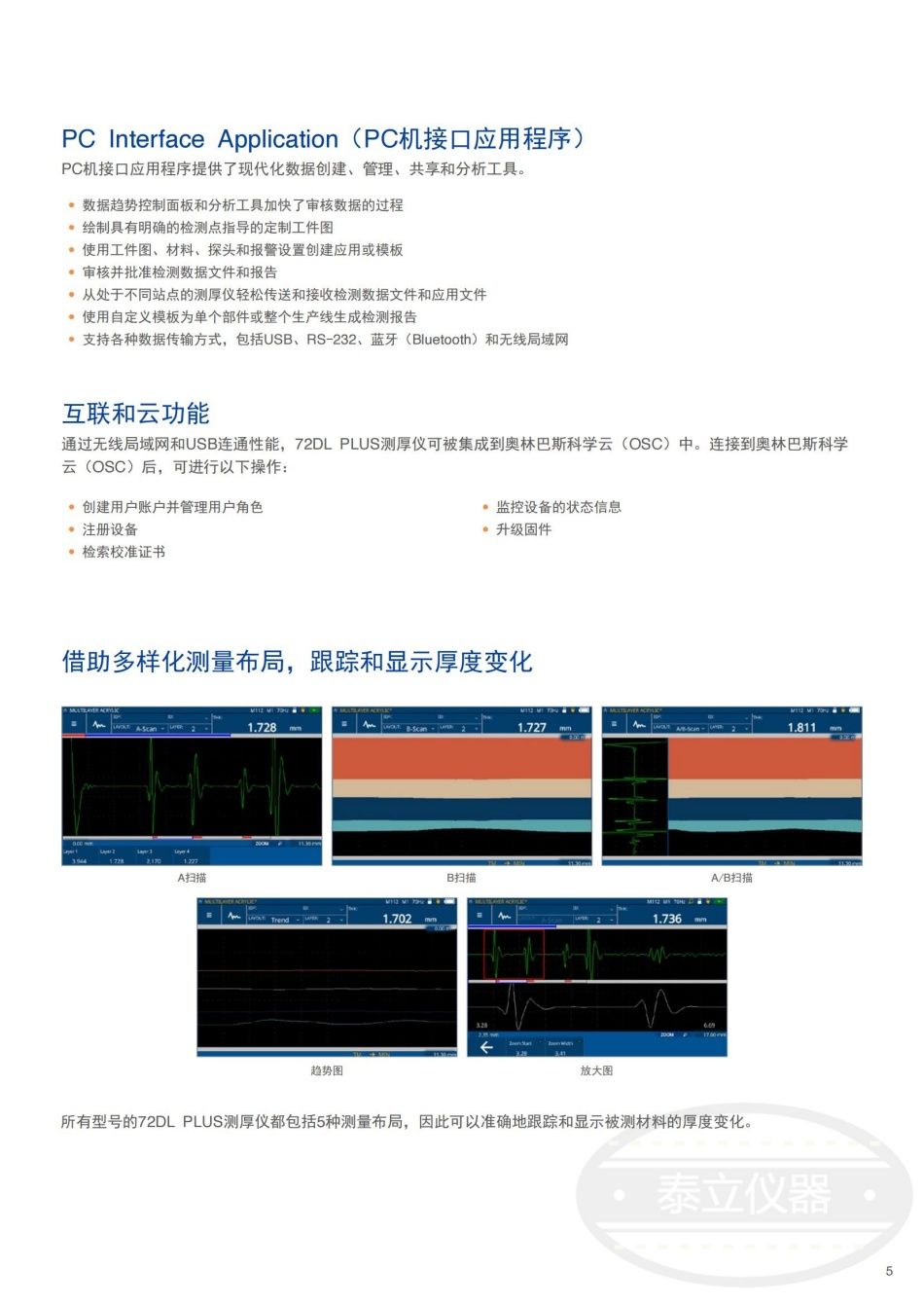 奧林巴斯高精度超聲波測(cè)厚儀72DL PLUS還可以通過(guò)局域網(wǎng)、藍(lán)牙或數(shù)據(jù)連線(xiàn)和PC機(jī)聯(lián)接,將數(shù)據(jù)上傳到電腦程序中,加快數(shù)據(jù)收集和查看過(guò)程,將測(cè)量的工作流程大大簡(jiǎn)化,再次提高檢測(cè)工作的效率。