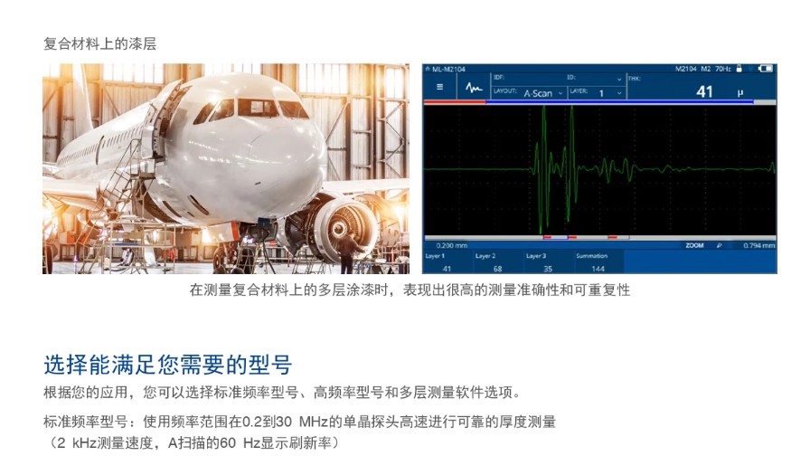 奧林巴斯高精度超聲波測厚儀72DL PLUS特別研發(fā)的多層測量軟件,提供*多6層厚度測量能力,能夠測量多層漆料、塑料、金屬和涂層等,可以同時顯示*多六個獨立層的厚度,實現(xiàn)了測厚檢測能力的飛躍式發(fā)展。