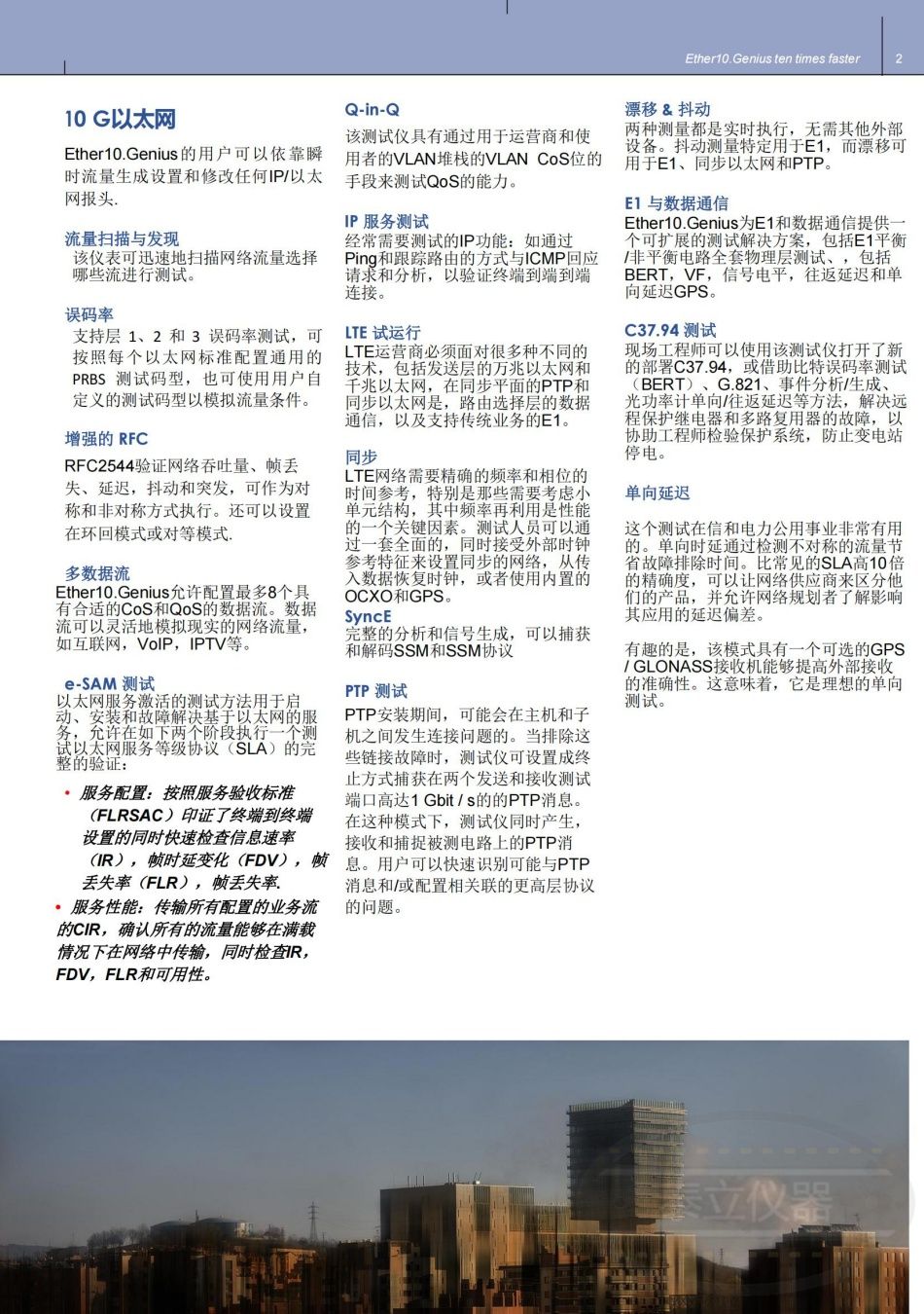 特色和優(yōu)點- Y.1564(e-SAM)FTD,2路FDV,F(xiàn)DV,2路FTD,F(xiàn)LR,SES,PEU和PEA